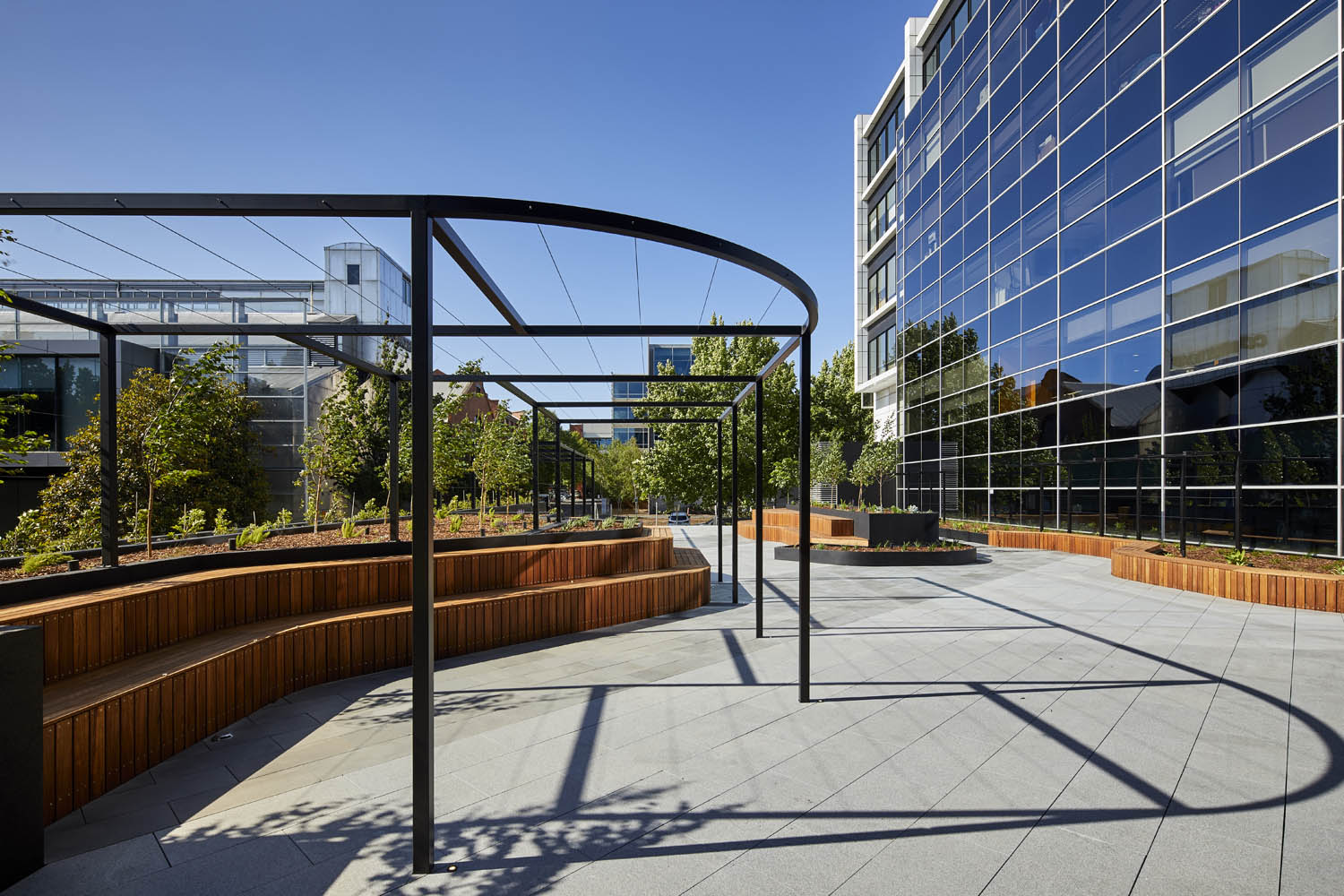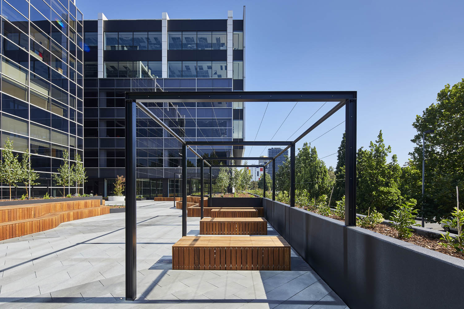 The $7.0m refurbishment transformed 658 Church St into an A grade commercial property. The lobbies, ground floor plus 5 floors all received an upgrade making way for a new tenant. Externally the building received a face-lift with new feature cladding and steel canopies designed by Wellard Architects and an extensive landscaping package by Ben Scott Design. This landmark project was completed in under 6 months, the project sees the continuation of Insitu Group’s relationship with Pod Co and Terraplex.