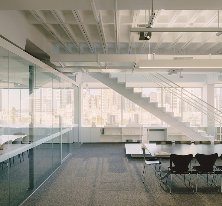 Although the entire office fit out embodies Bates Smarts trademark sophistication and minimalistic aesthetics, the state of the art integrated steel staircase is the undoubted hero of the space.