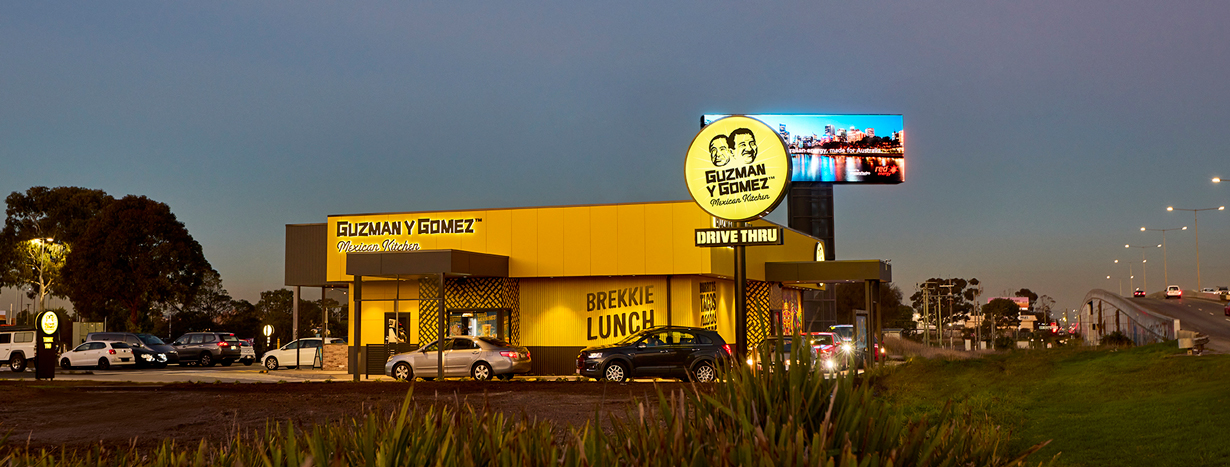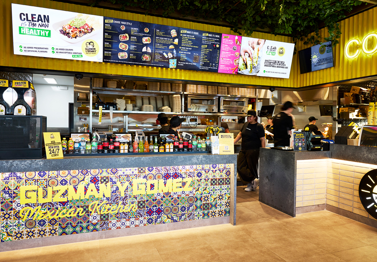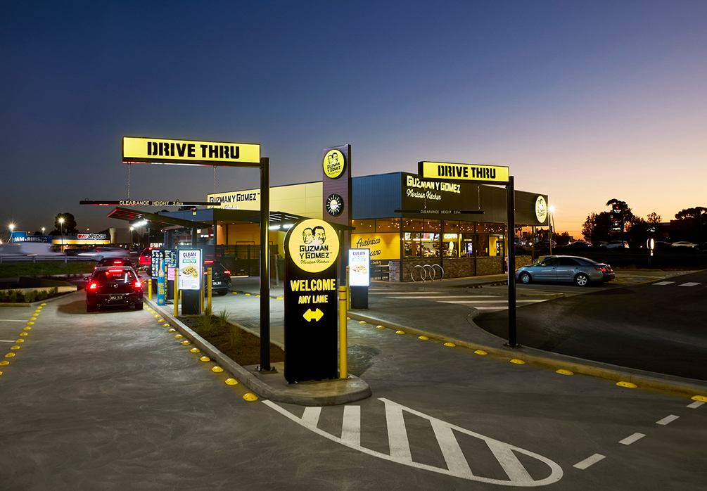 The construction and fit out of the 240m2 Guzman y Gomez store, featuring dual drive-thru lanes, a car park, and landscaped surroundings, was completed in May 2024. Located on Somerton Road, right opposite a bustling shopping centre, GYG Roxburgh Park stands out with bespoke joinery, booth seating, and unique design finishes.