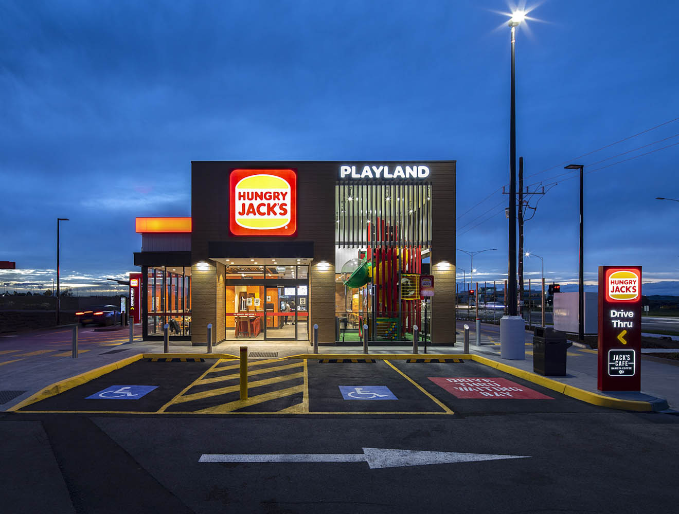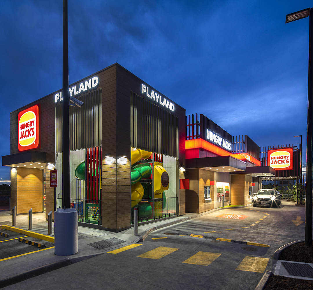Construction of a new drive thru fast food restaurant to Hungry Jacks specifications, designed by Architecture HQ and Fang Architects. Constructed in the existing Manor Lakes Central Shopping Centre carpark while the centre continued trading. The scope included carpark alterations to suit the new pad site layout, landscaping and irrigation. To minimise the impact to the existing centre and carpark area works were staged around trading hours. Completed in June 2021 for repeat client Ranfurlie Asset Management and Case Meallin.