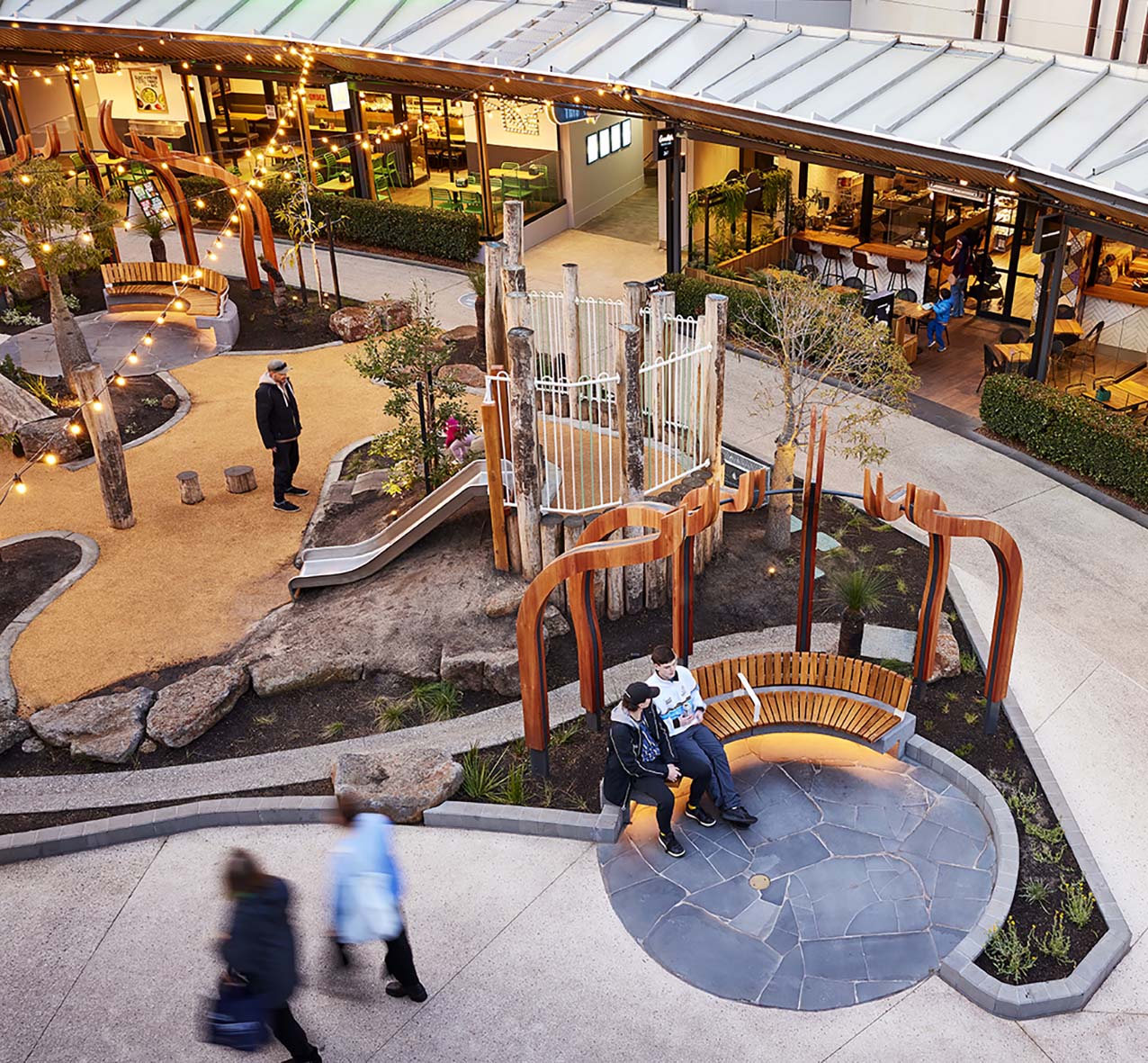 Vicinity Centres have transformed the Entertainment and Leisure Precinct through an extensive redevelopment that enhances the overall visitor experience. The project encompasses various enhancements, including spatial reconfiguration, improved thermal comforts and creation of an urban forest retreat. Prominent improvements involve an extension of a hotel bar, architectural and services treatments to the existing LSA’s with upgrades to lighting, heating, cooling and finishes. Furthermore, the carparking and streetscape areas have been rejuvenated with the addition of landscaping, park benches, bike racks and improved parking facilities. A standout feature of this redevelopment is the urban forest retreat, designed by landscape architect Lat Studio. This retreat offers visitors an invigorating space, featuring both hard and soft landscaping, providing a new and engaging area to meet and play. Successfully completed in May-23, together with APP, the $7.2m also included a small ambience upgrade to the level 1 mall.