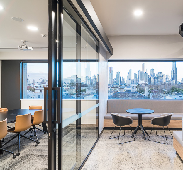 The Raglan St project, at Corsair House in South Melbourne, was completed in June 2017 for MAB, Buxton Projects and Plus Architecture. Consisting of 1500m² of office fit out, over three levels, with polished concrete floors throughout. Custom joinery and partition systems were constructed to frame the extraordinary views across the CBD.