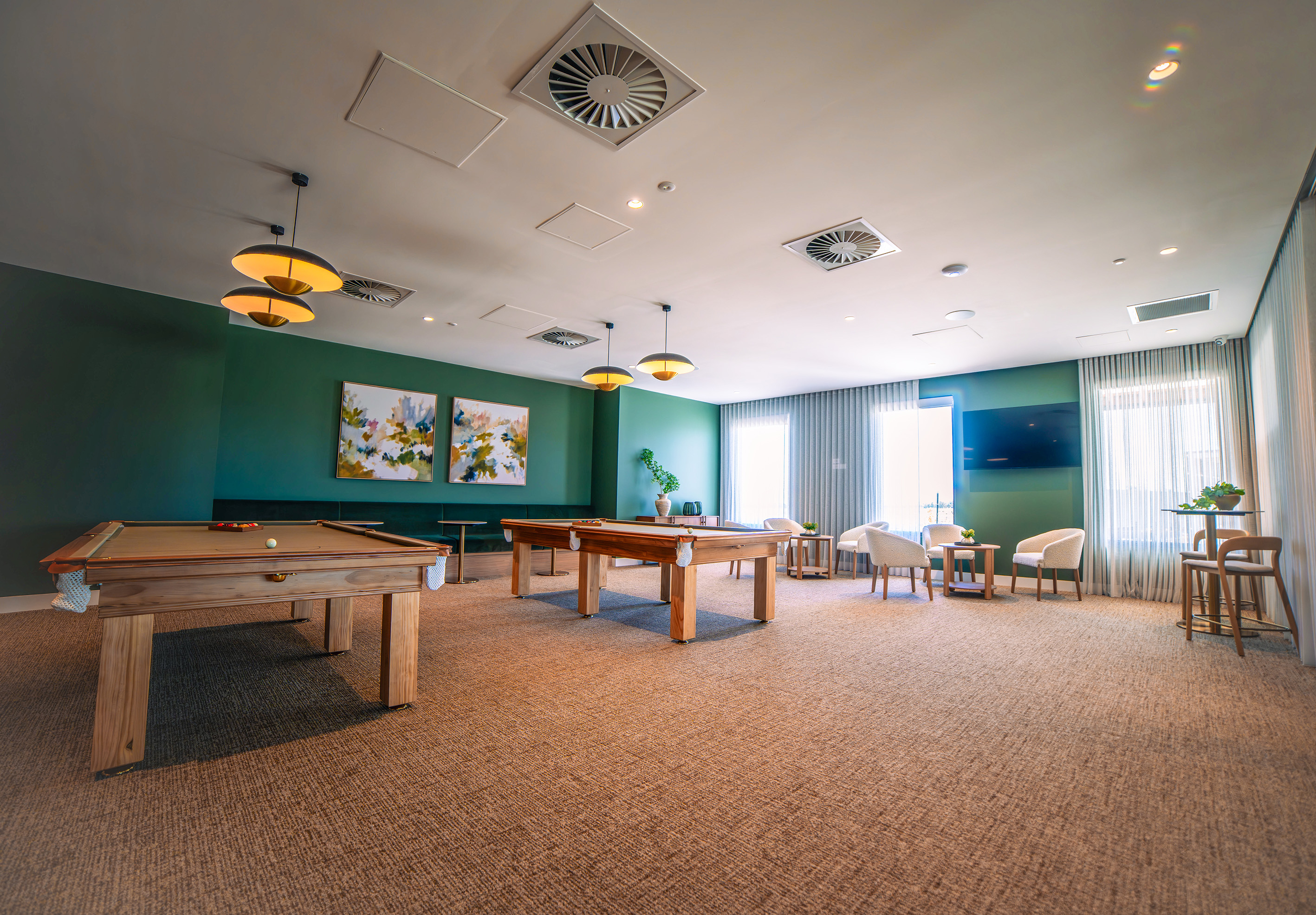 Delivered as a full Design & Construct project, this 1,578m² Community Clubhouse provides residents with a high‑quality suite of facilities including an indoor pool, sauna, gym, library, lounge, cinema, golf simulator, art and creative spaces, and generous kitchen and dining areas.